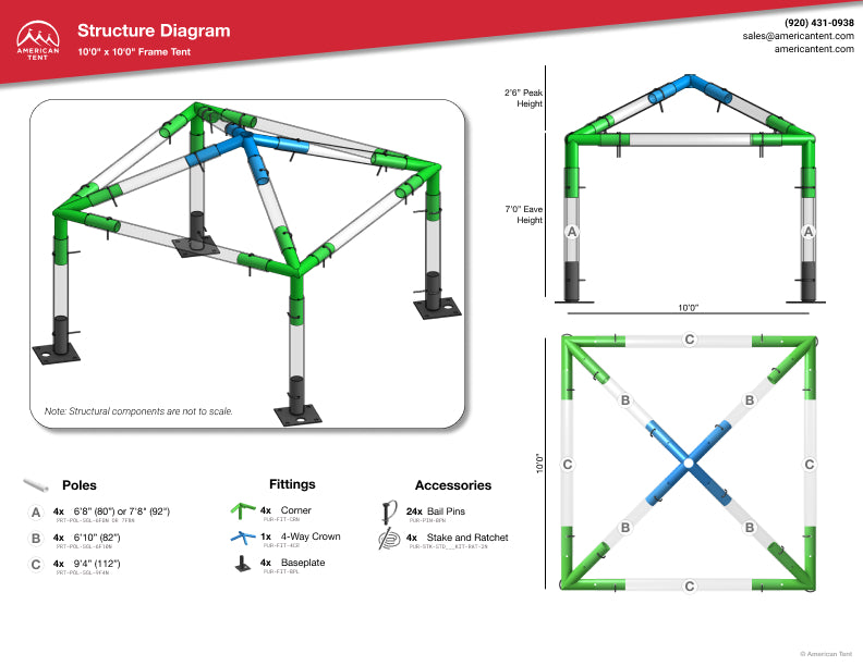 Setting up a 10-by-10 frame tent is a cinch! Be sure to use a drop cloth to protect your new tent top from pinholes or stains. When you’re ready to assemble, lay out all the poles and fittings and begin assembling, starting with the center crown.