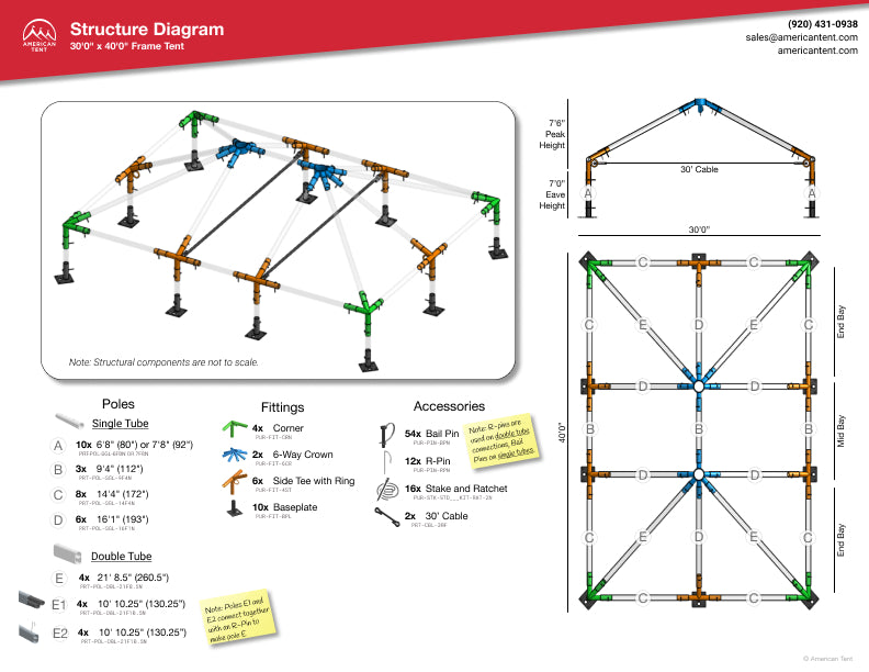 Setting up your 30-by-40 event tent is no trouble at all! Be sure to carefully follow the instructions and you’ll be up and running in no time. Don’t forget your drop cloths and frame jacks for ultimate tent setting up ease.